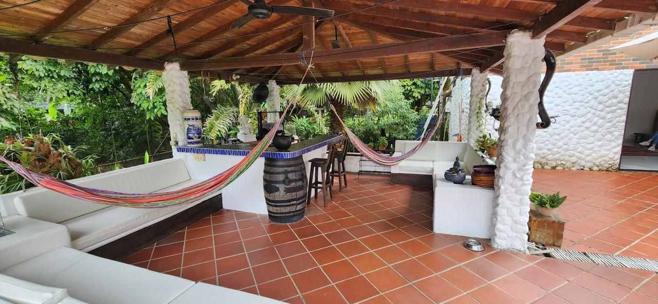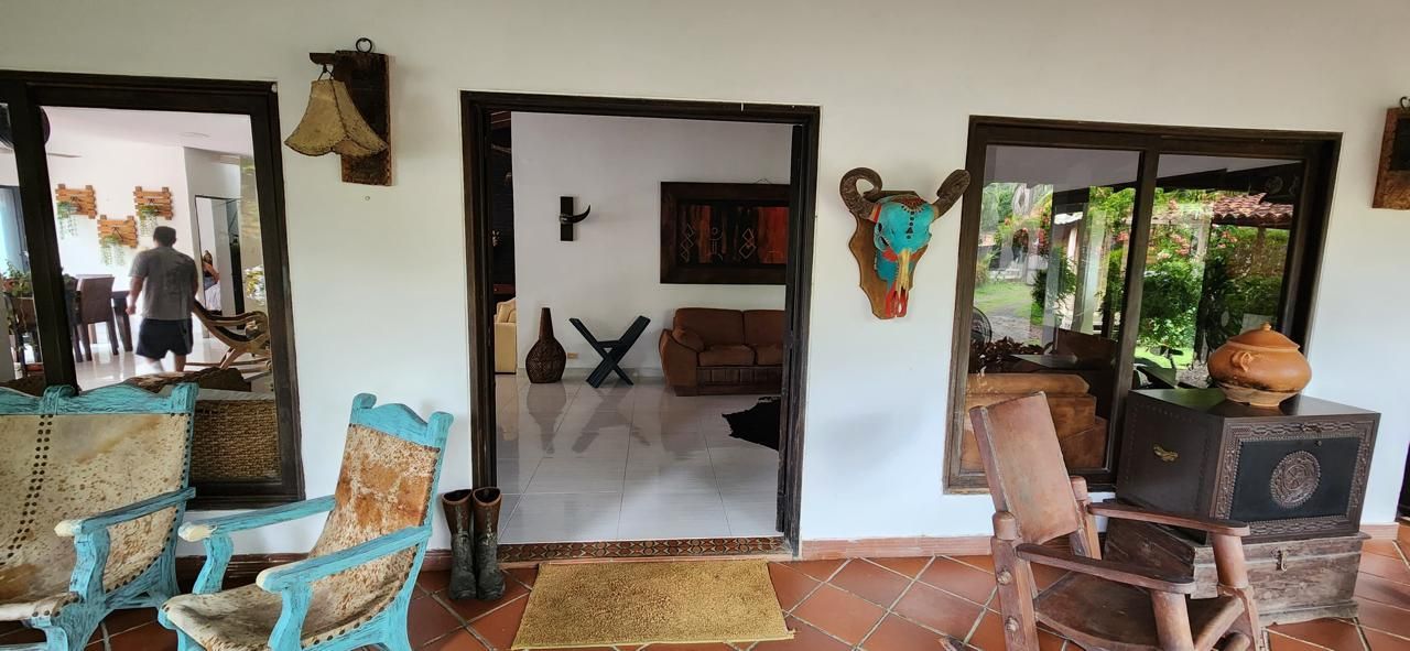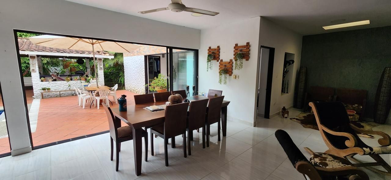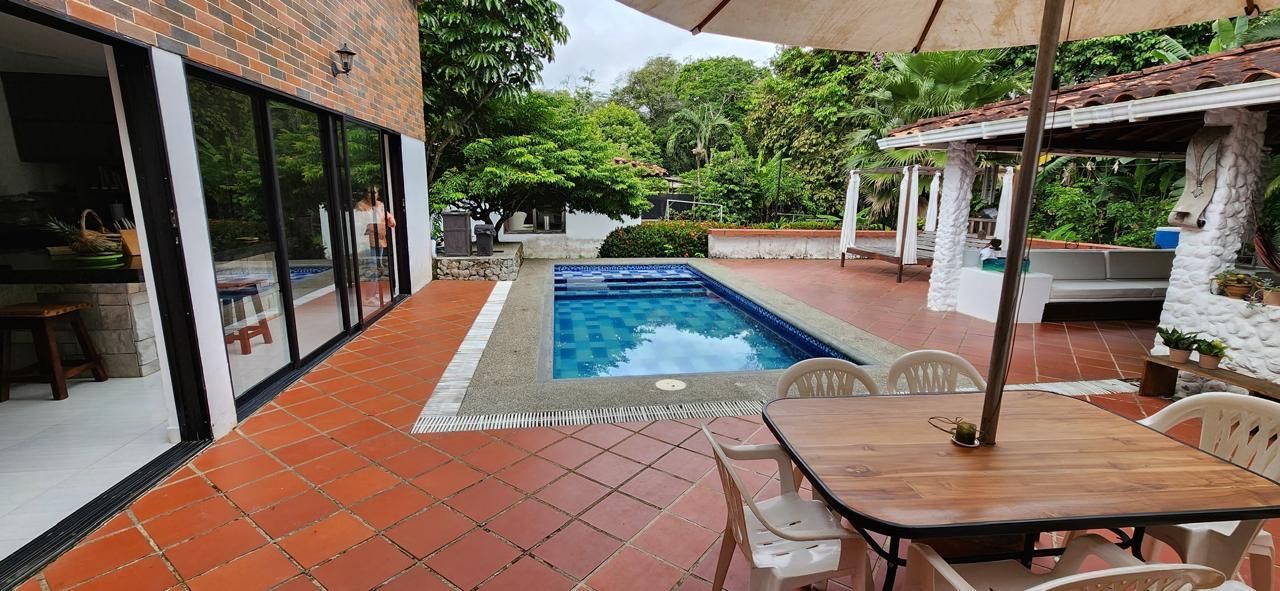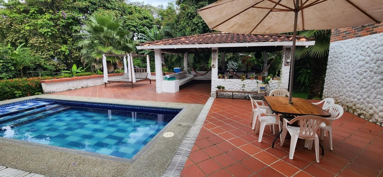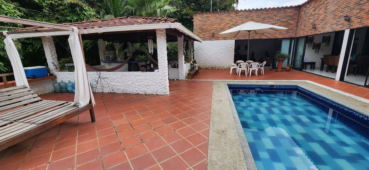 4 habitaciones, 4 baños, 2 salas, comedor, corredores amplios, cocina, piscina, kiosko con asador, sofás en mampostería, área amplia para asoleadoras.