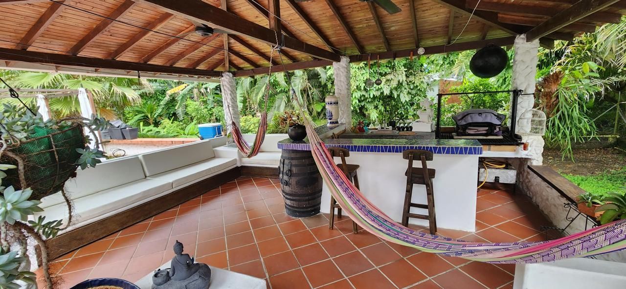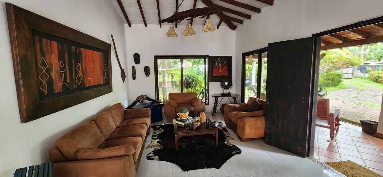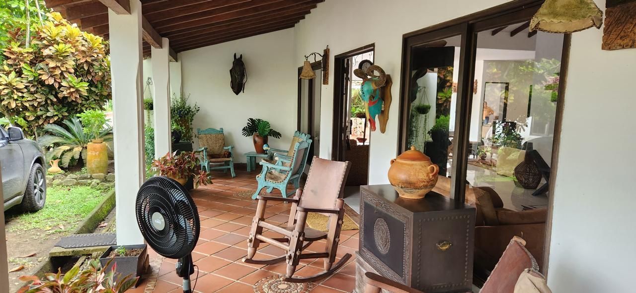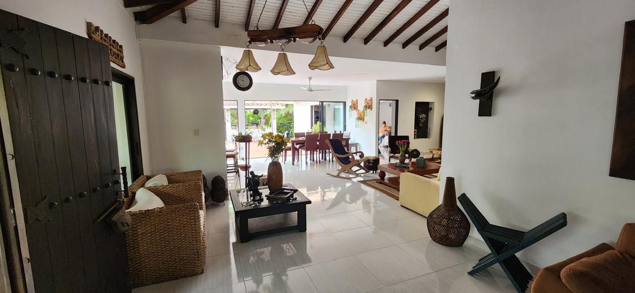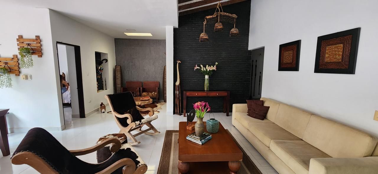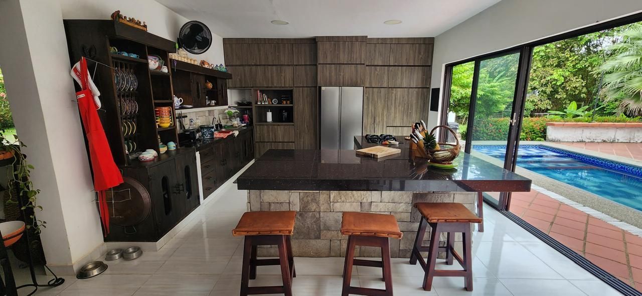 4 habitaciones, 4 baños, 2 salas, comedor, corredores amplios, cocina, piscina, kiosko con asador, sofás en mampostería, área amplia para asoleadoras.